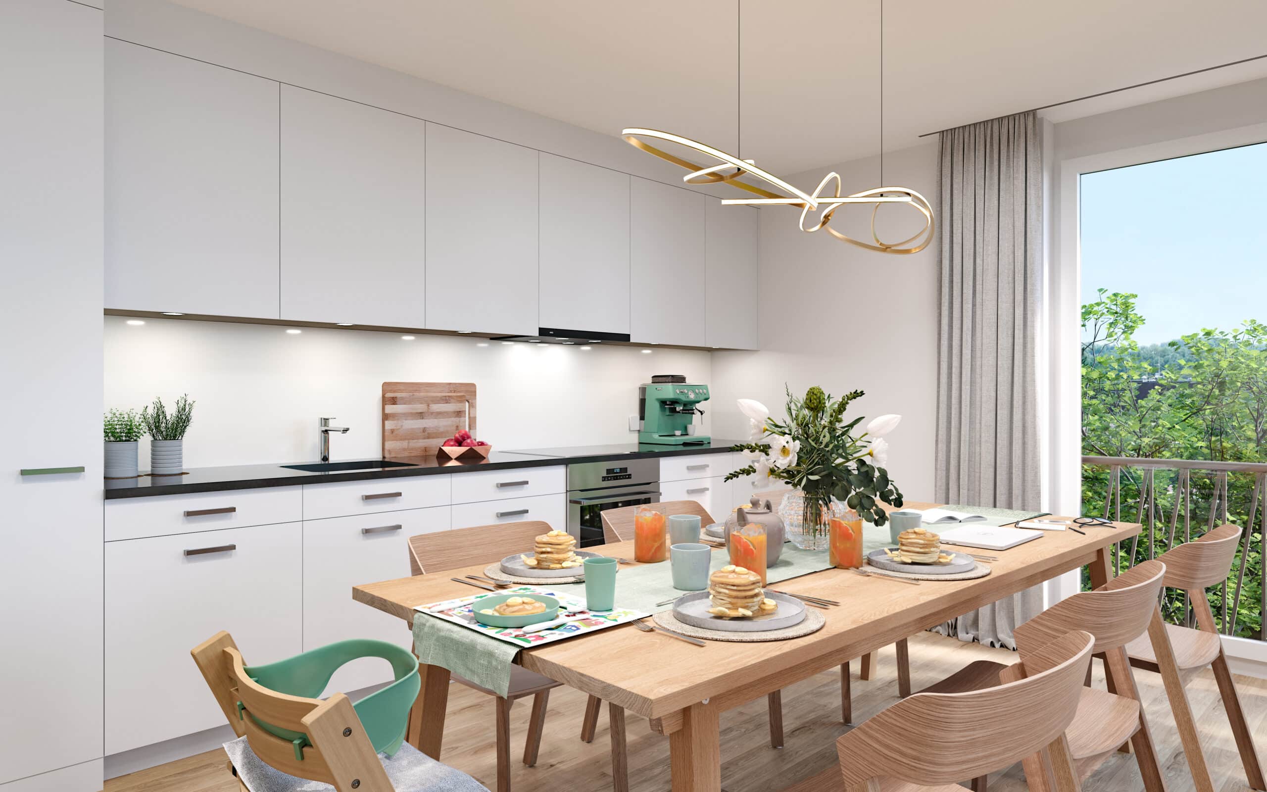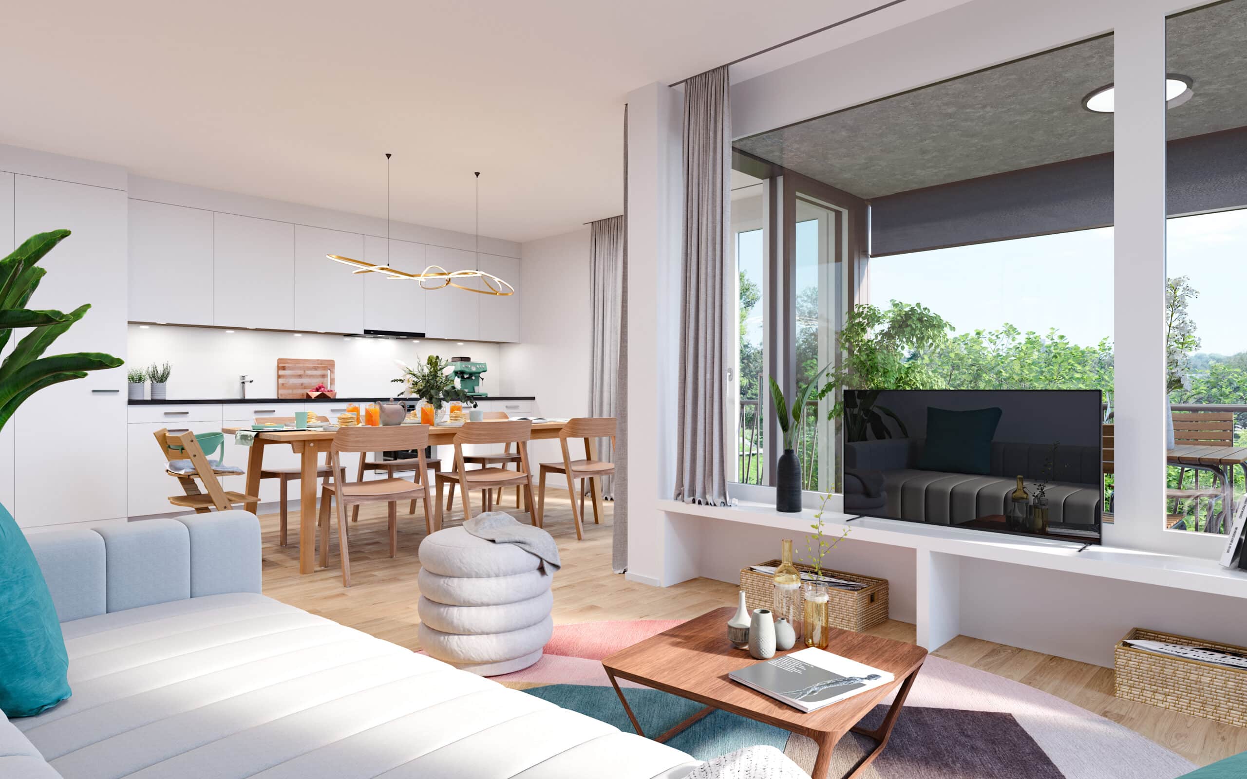 Alle Wohnungen im Haus B sind altersgerecht (LEA Gold Standard). Familien mit Kindern schätzen die eigene Kita. Im Allverte sind alle Generationen zu Hause.
