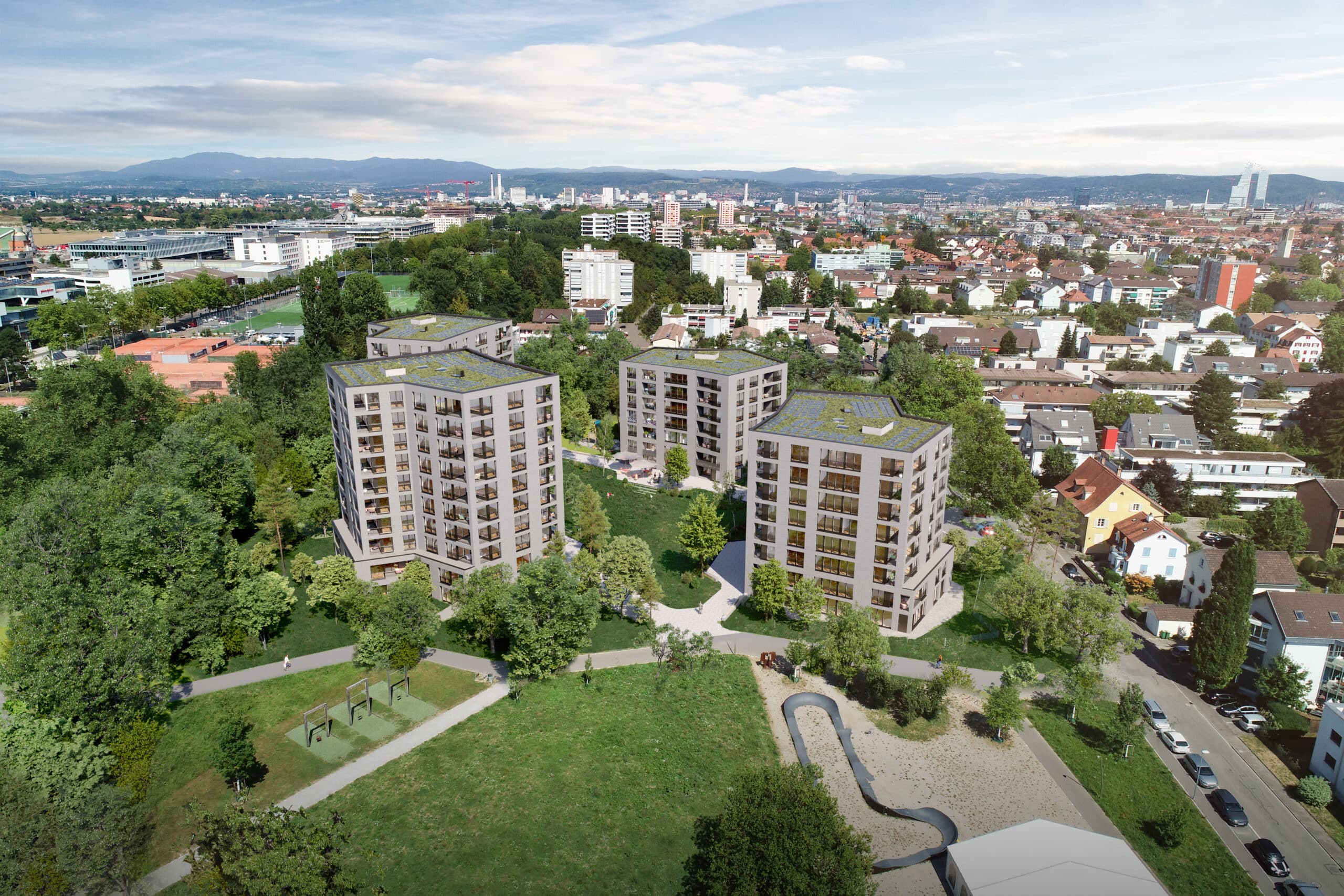 Willkommen in der neuen Siedlung Allverte-Wegmatten im sympathischen Allschwil. Die vier nachhaltig erstellten Gebäude verbinden alles, was ein Zuhause auszeichnet, dass keine Wünsche offen lässt: Wohnen, umgeben von viel Grünraum und kleinen Gemeinschaftsgärten, mit Nähe zum pulsierenden Basler Stadtleben. Hier werden auf vorbildliche Weise Generationen zusammengeführt, hier fühlen sich alle wohl.